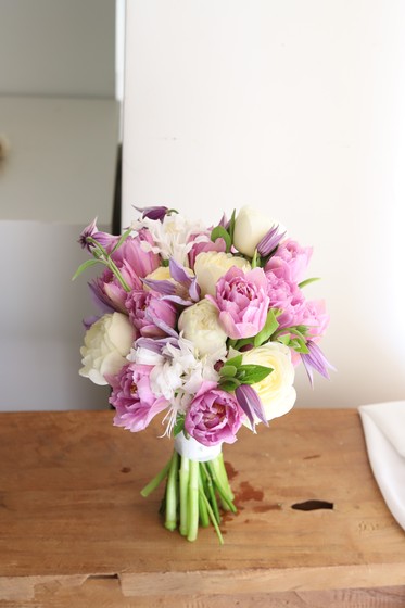 보라겹튤립과 올포화이트 장미를 조화롭게 매칭한 부케입니다. 고운 보라색과 순백의 화이트 꽃이 어울려 신부님을 더욱 화려하게 만들어줄 부케입니다.