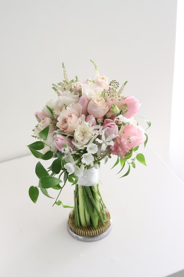 D76 화이트튤립+연보라 포인트 부케